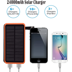 Stay powered when mains electricity is unavailable. This 24,000mAh solar power bank provides reliable backup energy for smartphones, tablets, GPS units, and other USB-powered devices. Designed for outdoor use and emergency preparedness, it combines high battery capacity with integrated solar panels in a durable, travel-ready design.