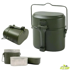 - 3-in-1 metal mess tin for cooking, boiling, and storage