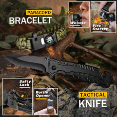 - Paracord survival bracelet with whistle, compass & fire starter