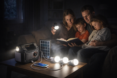 This portable solar power station is designed specifically for blackouts, emergency situations, and off-grid use. Combining a high-capacity rechargeable battery, multi-room LED lighting, AM/FM/SW radio, and USB phone charging, it delivers practical, reliable backup power in a compact unit.