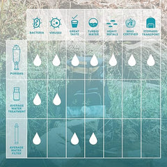 - Membrane Filter Performance: Removes 99.9999% of bacteria, 99.99% of viruses, and 99.9% of protozoa
